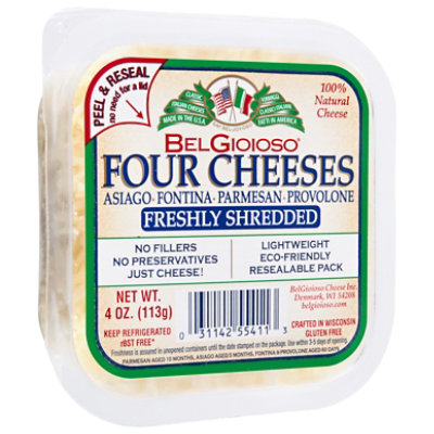 Belgioioso Natural Shredded Four Cheeses Asiago Fontina Parmesan Provolone Cup 4 Oz Albertsons